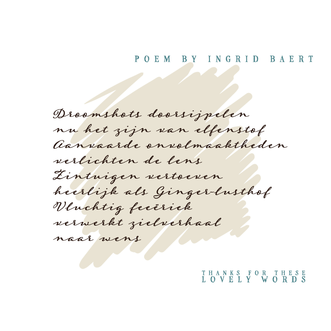 Dit gedicht werd speciaal voor mij geschreven door Ingrid Baert. Een welgemeende dankjewel hiervoor.